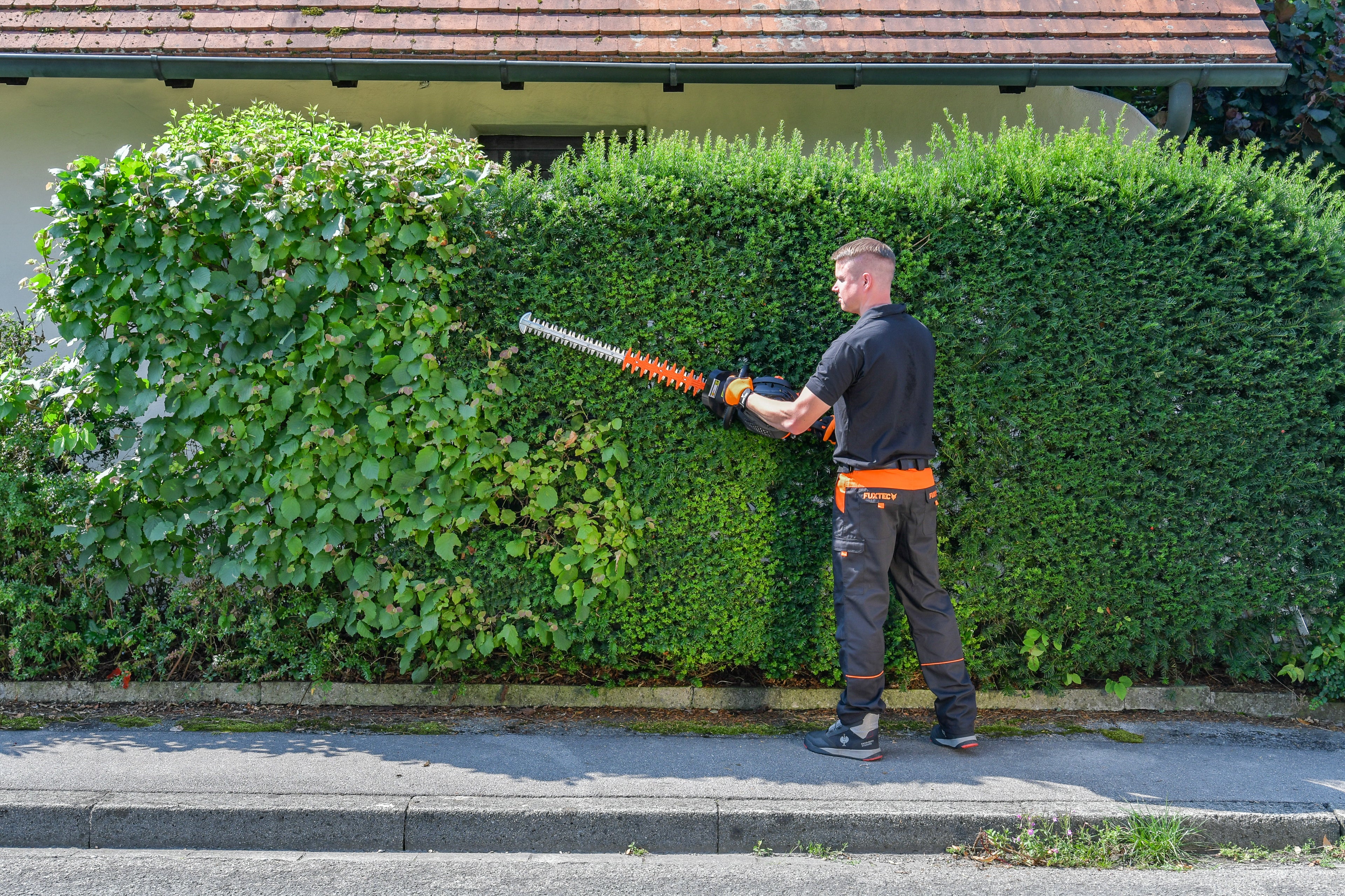 Profesjonalne nożyce do żywopłotu FX-MHP126 z ostrzem XXL są łatwe w obsłudze zarówno poziomo, jak i pionowo.